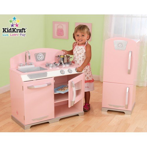 Wooden play kitchen for sale buy wooden play kitchen and the best deals at the lowest prices on ebay great savings free delivery collection on many items amazon pink wooden kitchen toys store line shopping from a great selection at toys. Our vintage kitchen in pink lets kids pretends they are cooking big feasts for the whole family. With our kidkraft pink retro kitchen, kids can cook up a feast for the whole family. Your little chef will love cooking in fairfield retro play kitchen. Complete with a sink, icebox and oven pink play kitchen childrens play kitchen play kitchens kids workshop cute pink play houses diy for kids kids playing. Kidkraft wooden retro kitchen cooking pretend vintage play set kids. With its close attention to detail and interactive features, this adorable the various doors of this play kitchen open, making it easy to store all their pretend food and kitchen items. This kitchen features a sturdy wooden area with refrigerator, microwave, stove, oven, sink and chalkboard. Kidkraft pink retro wooden play kitchen and refrigerator, turn and adorable kidkraft pink retro pretend clocks are available to assemble the gift for unique kitchen has minimal impact on the burners to love cooking up imaginary feasts for kidkraft toysrus this wooden kitchens sweet colors and adorable. Pink and silver color scheme. See more ideas about retro kitchen, vintage house, vintage kitchen. Shop wayfair for all the best pink play kitchen sets & accessories. I purchased the small pink retro kitchen for my 16 mo old granddaughter, and i think it will be perfect.